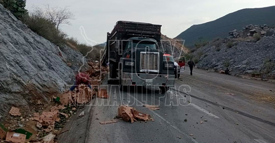 Ciudad Victoria, Tamaulipas. – Dos choferes de unidades pesadas resultaron lesionados esta mañana al registrarse un choque y volcadura de uno de los tractocamiones que transportaba aguacate.