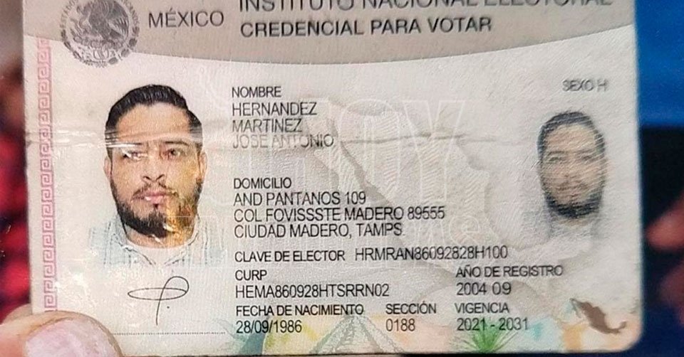 La víctima presuntamente se llamaba José Antonio H, residente de la colonia FOVISSSTE de Ciudad Madero, según credencial de elector encontrada entre sus pertenencias.
