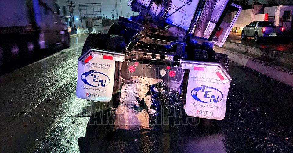 Trepa tráiler a muro en carretera de Nuevo Laredo