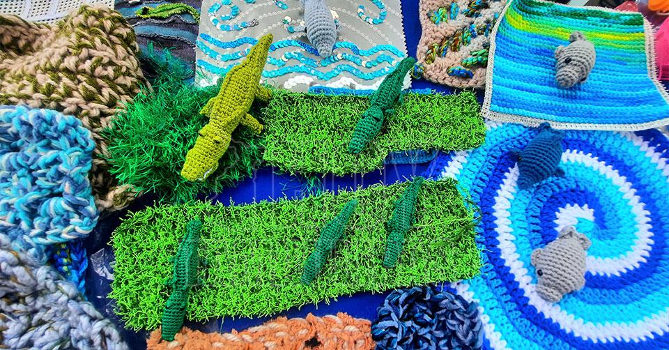 Tampico, Tamaulipas.- A través del programa "Tejer nuestro mapa: el campo, mi manto", realizado en la Plaza de Armas de Tampico, el Gobierno Municipal busca crear un mapa completamente tejido que contenga los atractivos más icónicos de la región, entre ellos los cocodrilos, las nutrias, los mapaches y hasta la base extraterrestre, para dejarlo como una expresión del propio pueblo, informó Rosa María Ramírez de León.