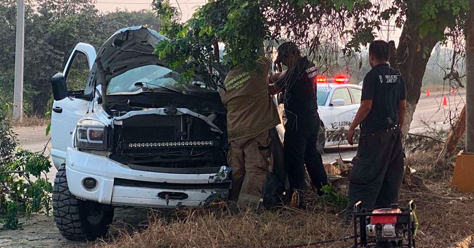 El vehículo colisionado es una camioneta Dodge Ram color blanco cuatro puertas, cuyo conductor perdió el control y trepó al camellón donde se impactó contra el poste de alumbrado público y el árbol que fue derribado.