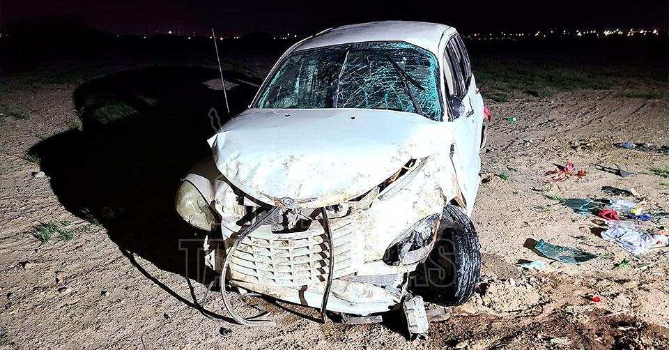 Tras lo anterior, el vehículo se desvió a la derecha, y volcó tras chocar contra un montículo de tierra, quedando en posición normal.