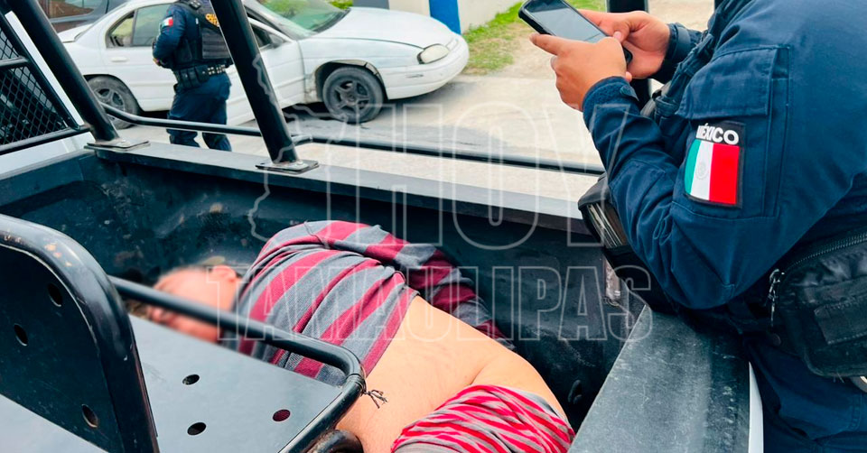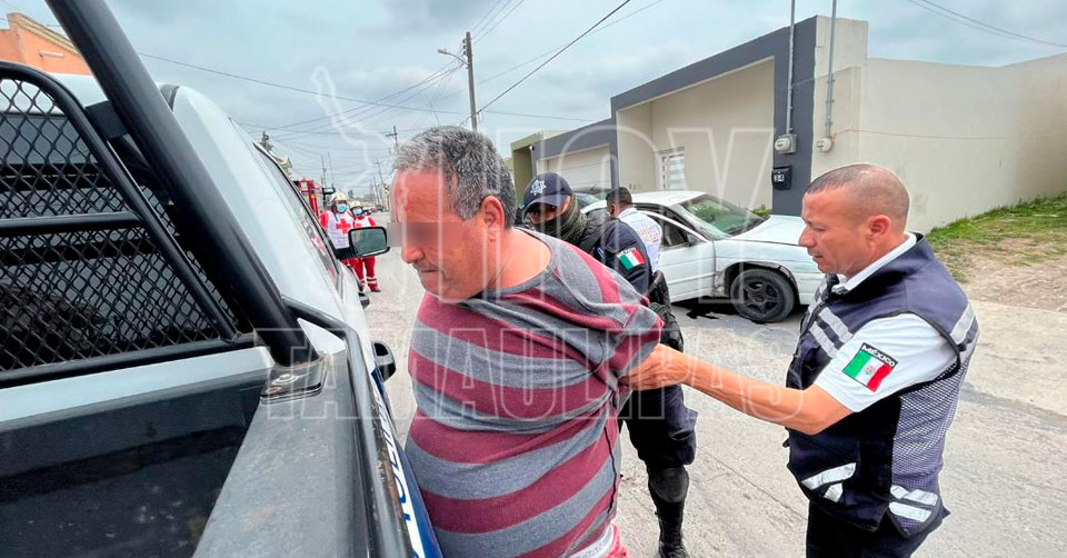 Matamoros, Tamaulipas.- Un alcoholizado sujeto que “por la mañana no hace nada y por la tarde descansa” y su ayudante, terminaron detenidos luego de colisionar en el Fraccionamiento Arboledas en Matamoros.