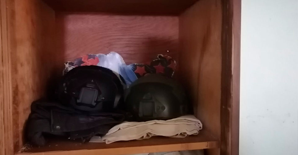 Al arribar al lugar señalado, encontraron la puerta principal abierta y visualizaron cuatro armas de fuego, 60 cargadores de arma de fuego, siete chalecos y siete cascos tácticos.