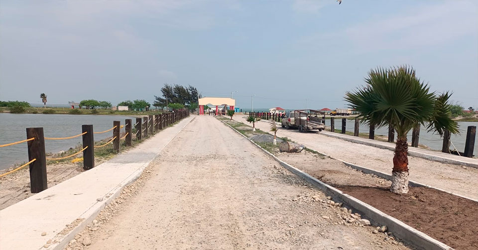 Los trabajos contemplan la rehabilitación del acceso a la playa con un puente de dos cajones, guarniciones, banquetas, así como palapas, mesas, asadores, luminarias entre otros trabajos de obra pública, para acondicionar y mejorar la imagen playera y áreas de descanso y de esta costa del golfo.