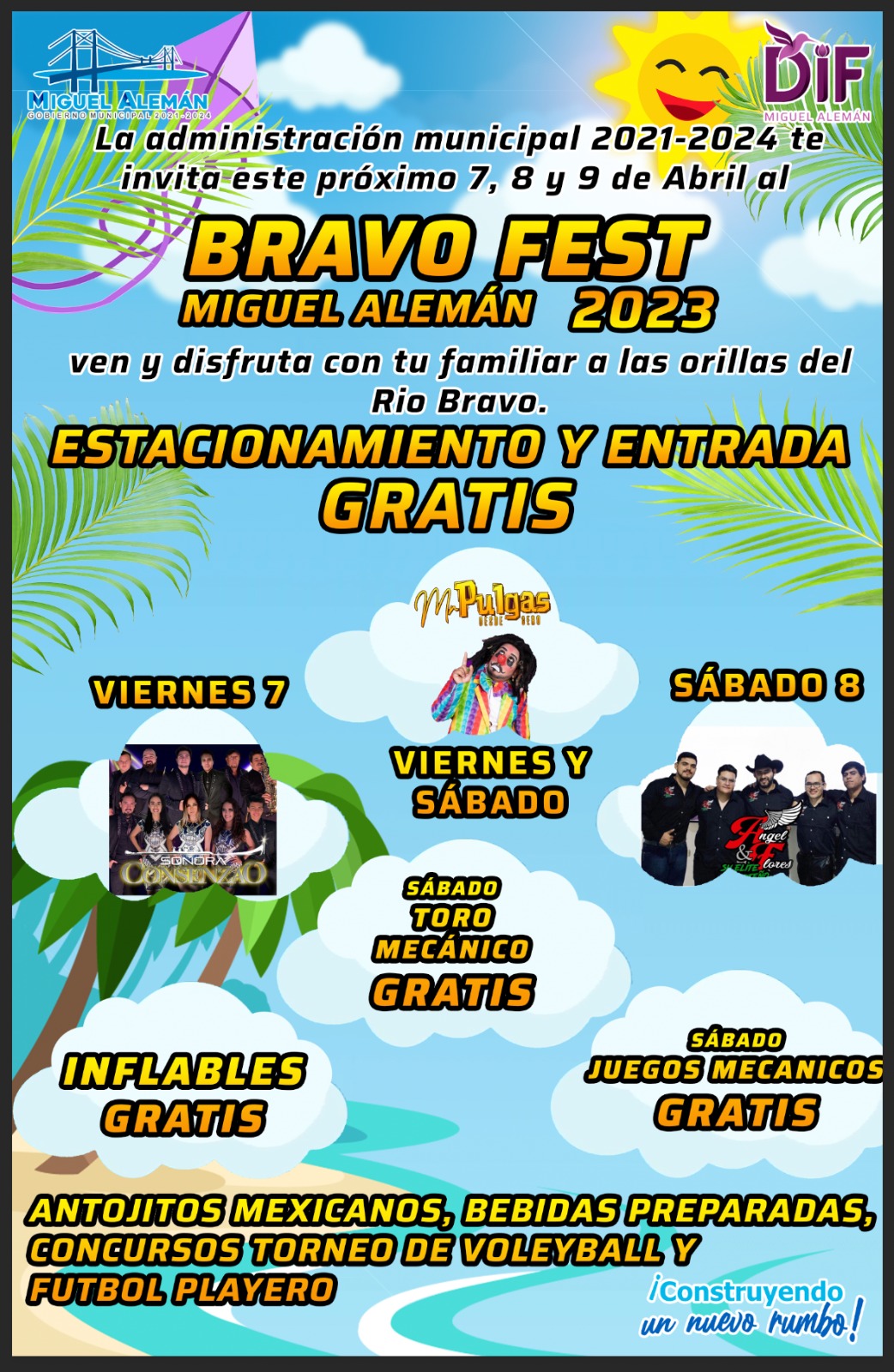 Ciudad Victoria, Tamaulipas. - El alcalde de Miguel Alemán, Ramiro Cortez Barrera, informó que con una cartelera estelar se realizará a partir de hoy y hasta el domingo de Pascua el festival "Bravo Fest", que tendrá lugar en el parque natural de la ribera del río Bravo, abajo del Puente Internacional.