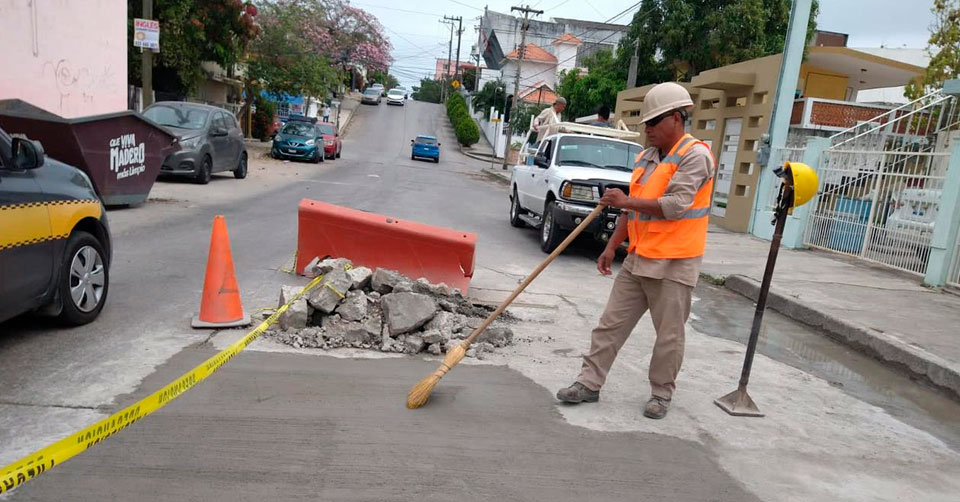 Y de forma ininterrumpida se sigue trabajando en las acciones de reposición de pavimentos, ya que estas labores son prioridad para la actual administración de Comapa Sur.