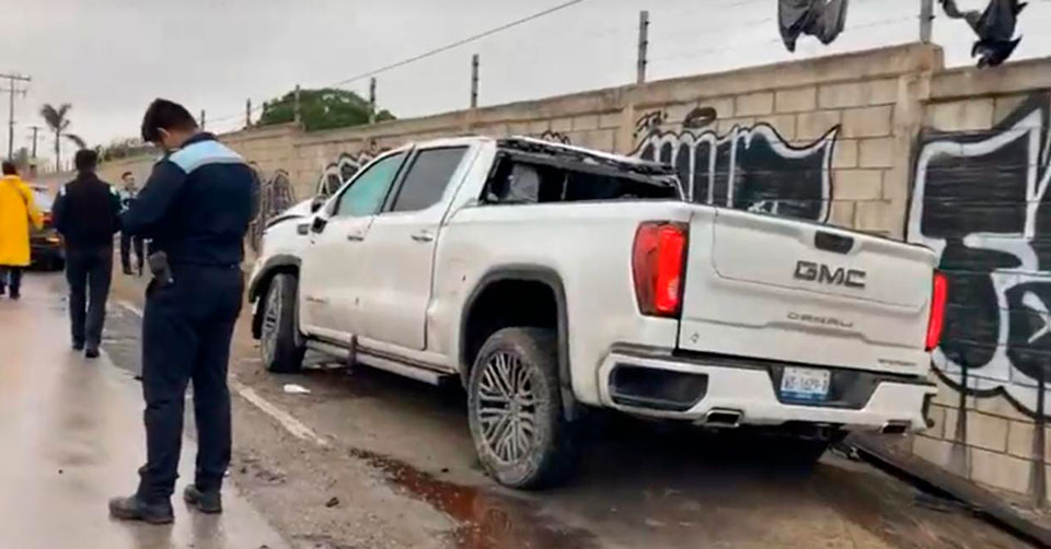 También una camioneta GMC se cayó del distribuidor vial del Aeropuerto de Tampico; cuatro personas salieron por su propio pie y dejaron la unidad abandonada.