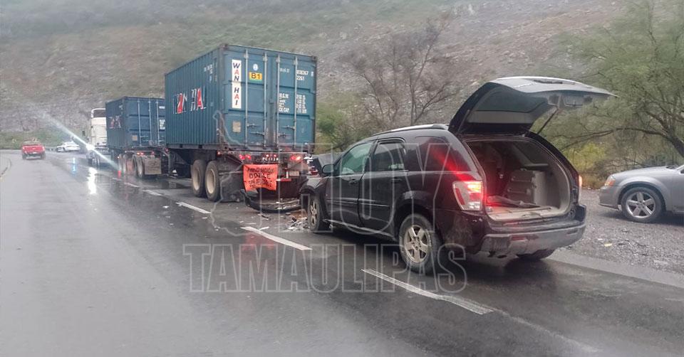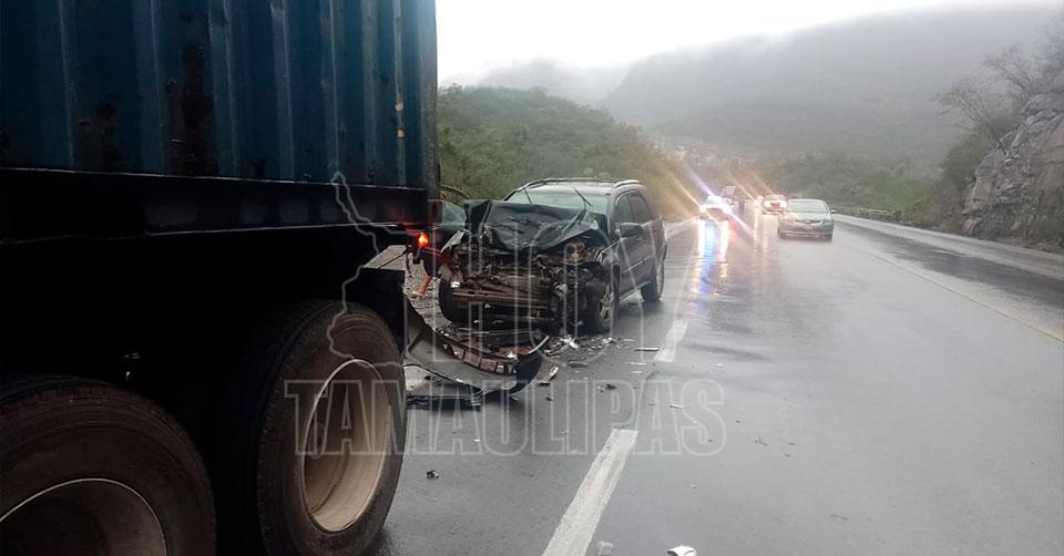 Ciudad Victoria, Tamaulipas. - Dos personas resultaron lesionadas y una más quedó prensada al impactarse la camioneta en la que viajaban contra un tractocamión, en el kilómetro 16 de la carretera Rumbo Nuevo.