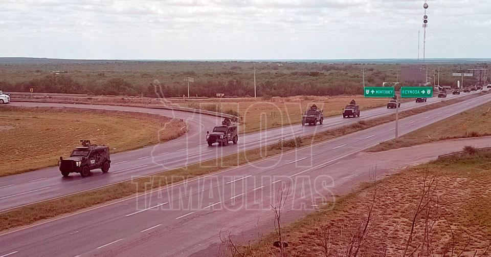 Reynosa, Tamaulipas. – El reforzamiento en materia de seguridad continúa en el municipio de Nuevo Laredo, con el nuevo arribo de elementos militares a dicha localidad.