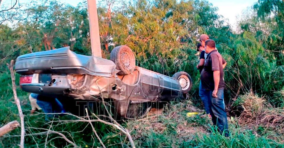 Vuelca presunto ebrio en Sendero Nacional en Matamoros; abandona carro