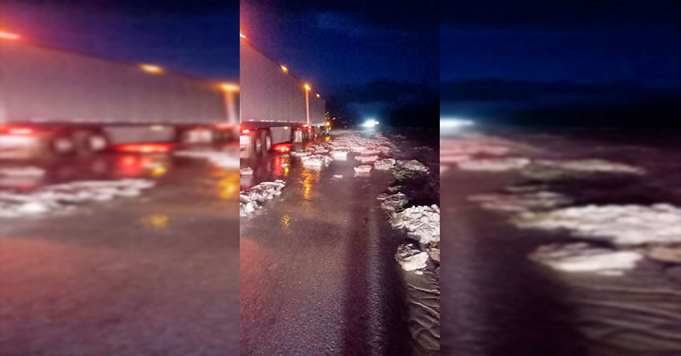 Tula, Tamaulipas.- Esta tarde se reportó una fuerte granizada en la carretera Tula-Ciudad Victoria a la altura del Ejido Cerro Mocho, entre los kilómetros 53 al 56, según reportaron usuarios de redes sociales, quienes postearon vídeos y fotografías.