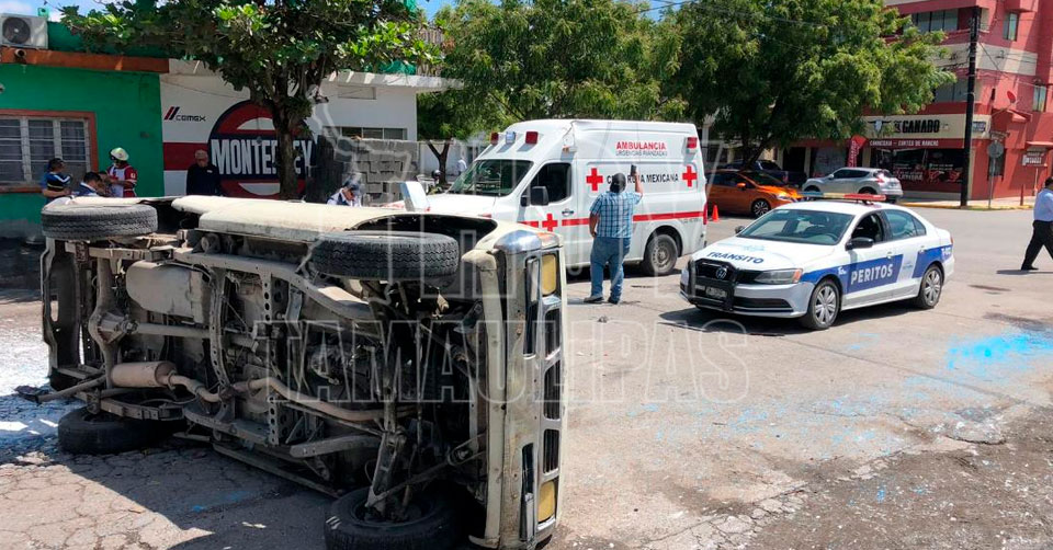 Ciudad Victoria, Tamaulipas. - Varias personas lesionadas entre ellas tres menores de edad y vehículos completamente manchados de pintura, fue el saldo de un choque con volcadura de una camioneta que transportaba el colorante, en el 16 Zacatecas.