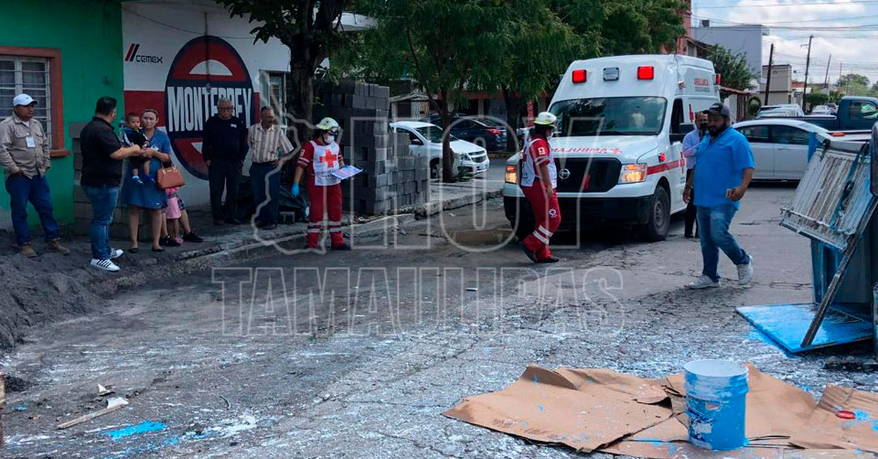 Vuelca camioneta que transportaba pintura en Ciudad Victoria; varios lesionados