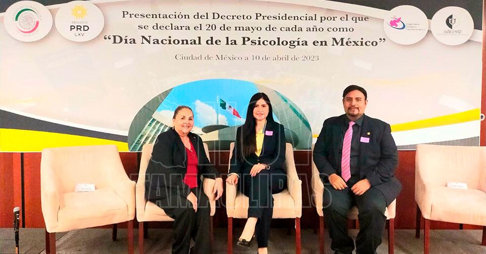 Tampico, Tamaulipas.- Los profesionales de la Psicología del sur de Tamaulipas celebran que el Gobierno de México haya avalado que cada 20 de mayo se conmemore en el país el Día Nacional de la Psicología, lo que fue ratificado el pasado 10 de abril en el Senado de la República, donde los legisladores federales presentaron a la comunidad profesionista de este sector el citado decreto presidencial, informó la maestra Claudia Eréndira Valdez Garza.