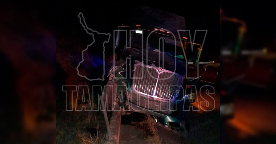 Jaumave, Tamaulipas. - Un tractocamión que transportaba plátanos estuvo a punto de volcar esta madrugada tras salirse del camino sobre la carretera Tula-Victoria, a la altura del kilómetro 31.