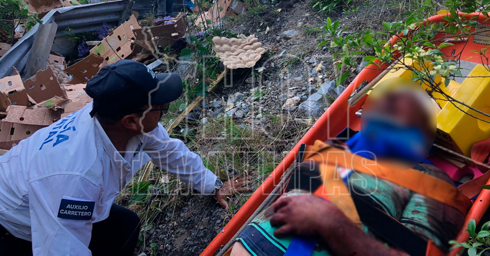 La caja que golpeo la frágil unidad quedó volcada y transportaba aguacate, mercancía que fue rapiñada por lugareños.