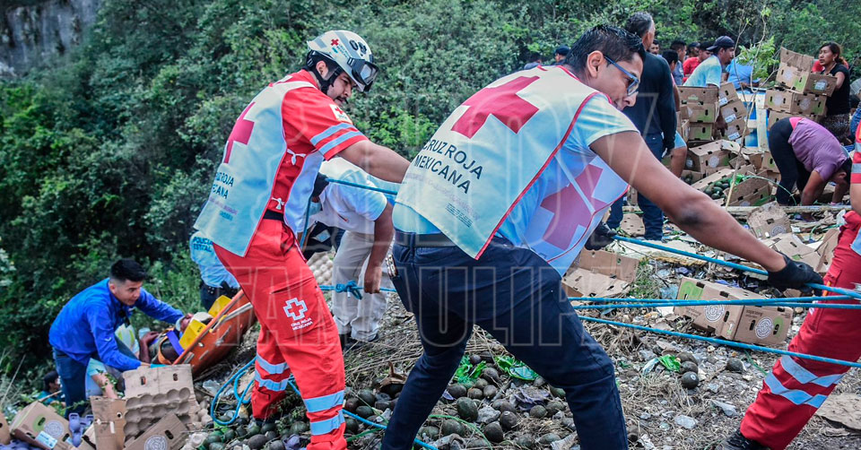 Mientras Coate y los paramédicos de Cruz Roja y Protección Civil rescataban personas, sin importarles que podrán entorpecer las labores, alrededor de 50 personas comenzaron a rapiñar la mercancía de aguacate que iba en el tráiler.