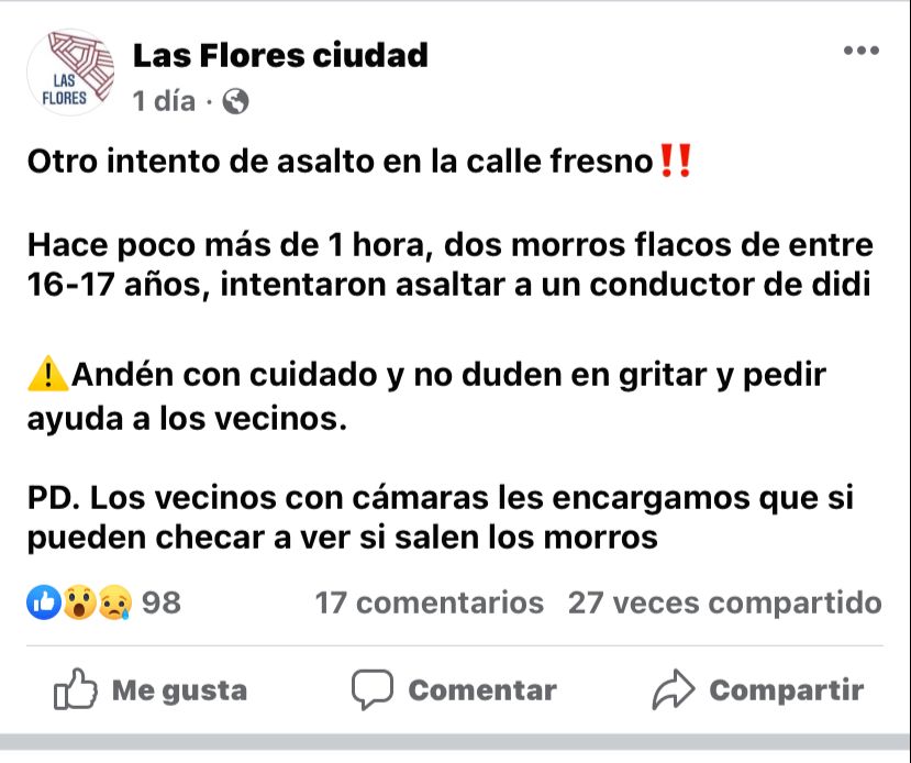 El temor ha llegado a cada uno de los ciudadanos luego de que el pasado miércoles se reportara el robo a un chofer de la plataforma Didi en dicho sector.