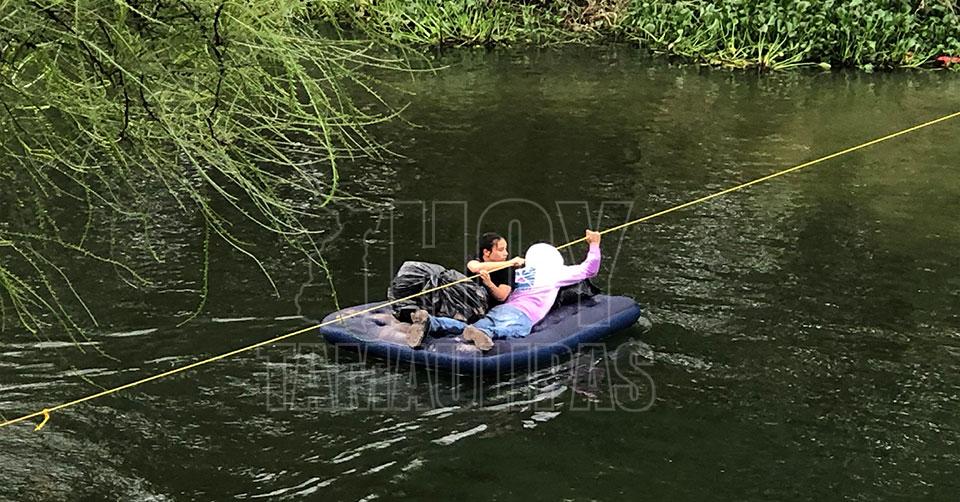 Niños llorando, mujeres rezando, gritos, es lo que se podía observar a la orilla del caudal al momento de que estaban en espera de subir a un colchón inflable para poder cruzar en familia al lado americano.