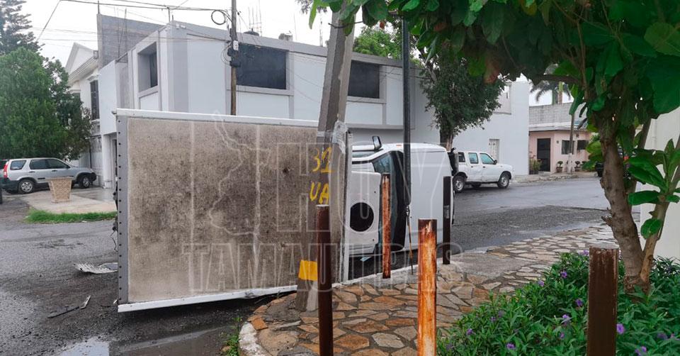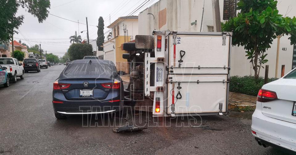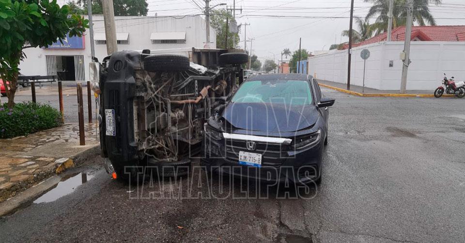 Ciudad Victoria, Tamaulipas. - Un adulto y dos menores de edad además de cuantiosos daños materiales, dejó como saldo un choque y volcadura registrados esta tarde, en la calle 13 y Chihuahua.
