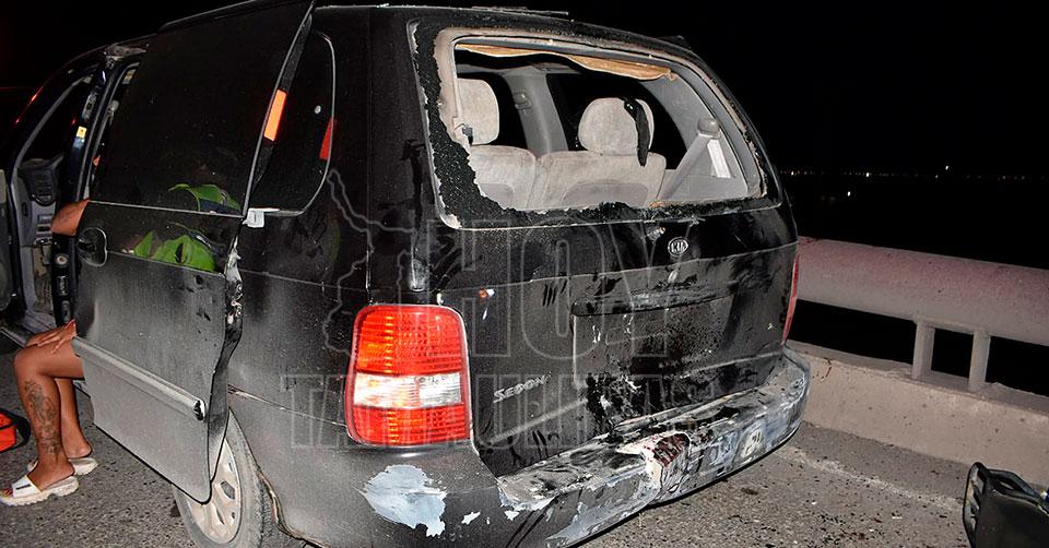 El chofer, de momento no identificado, iba empujando con la unidad un automóvil Chrysler PT Cruiser, que al parecer se había averiado en el lugar.