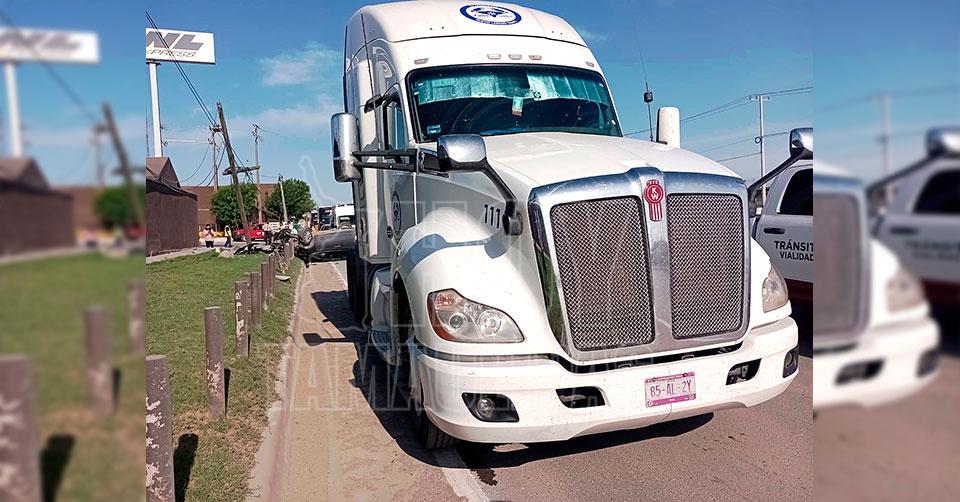 Mujer sobrevive a choque y volcadura tras ser impactada por tráiler en Nuevo Laredo