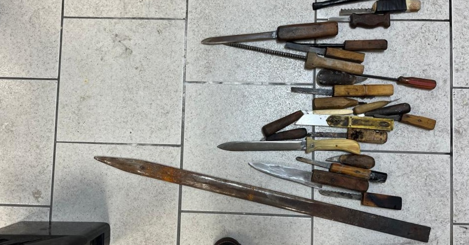 Un total de 26 navajas hechizas, 35 pastillas de colores diversos y 33 cajetillas de cigarro.