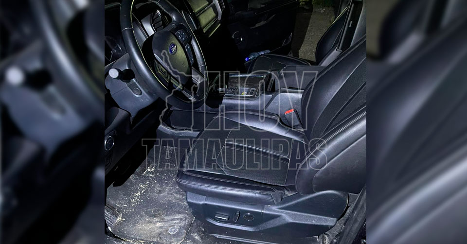 Reynosa, Tamaulipas. - Durante los recorridos de seguridad y vigilancia que el personal de la Guardia Estatal realiza en el municipio de Reynosa, se logró el aseguramiento de una camioneta con armamento y equipo táctico en su interior.
