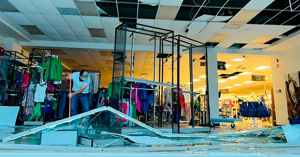 En ese sitio varios negocios quedaron con estropicios ya que las estructuras no soportaron la ventisca.