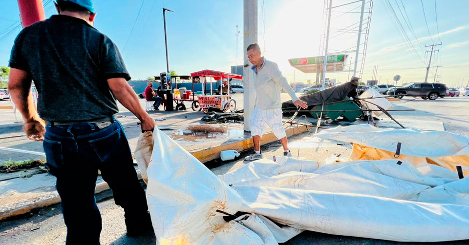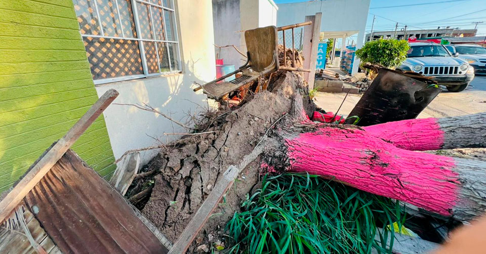 De la misma manera, en Sendero Nacional y 12 de Marzo, a la altura de Las Brisas, postes de CFE y Telmex cayeron sobre negocios, así como también en la Avenida Rigo Tovar, en la colonia Las Américas, Ampliación Solidaridad y otros sectores.