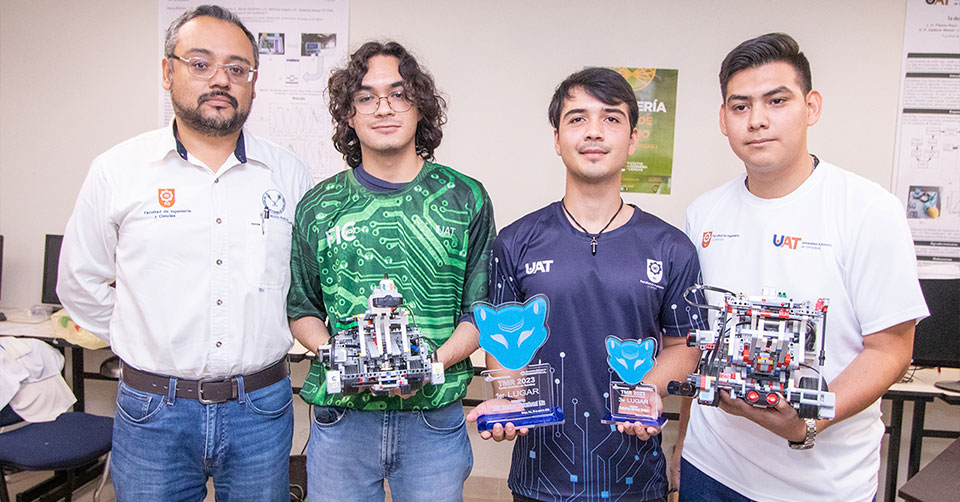 Ciudad Victoria, Tamaulipas.- Alumnos de la Universidad Autónoma de Tamaulipas (UAT) tuvieron una destacada participación en el XIV Torneo Mexicano de Robótica 2023 realizado en Xalapa, Veracruz, donde obtuvieron primer y tercer lugar en dos de las categorías del certamen, una de las cuales otorga el pase al torneo latinoamericano a celebrarse en Brasil.