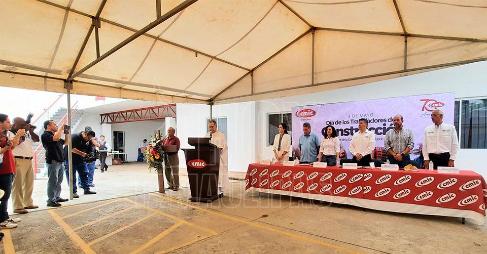 En su alocución, el presidente de la CMIC, Delegación Tamaulipas, Gerardo Holguín López, destacó la importancia de la base trabajadora que colabora en los diferentes proyectos de construcción, enviando un mensaje de unión y solidaridad para todas las compañías y trabajadores que tienen presencia en el Estado por esta fecha.
