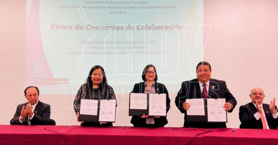 La firma del convenio se llevó a cabo entre la secretaria de Educación Pública, Lucía Aimé Castillo Pastor y el rector de la UT de Altamira, Juan Dionisio Cruz Guerrero.