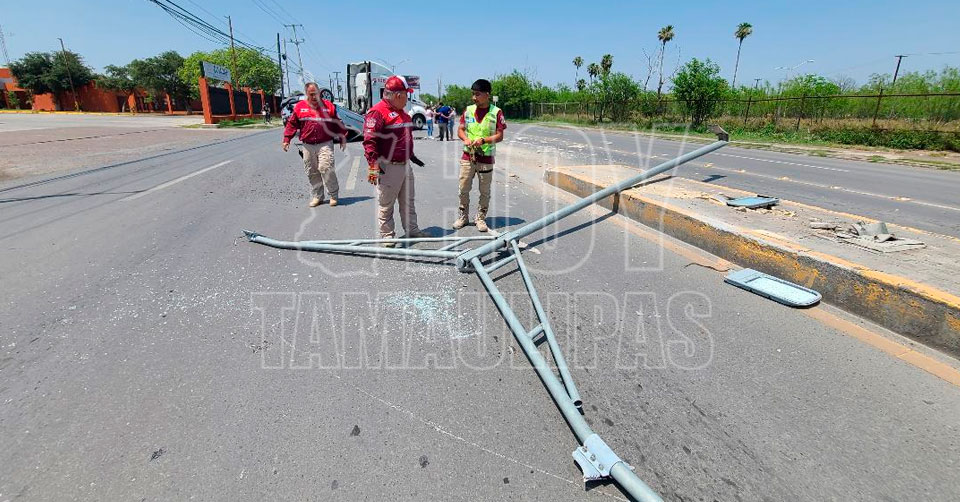 Vuelca tras chocar y derribar arbotante en Nuevo Laredo