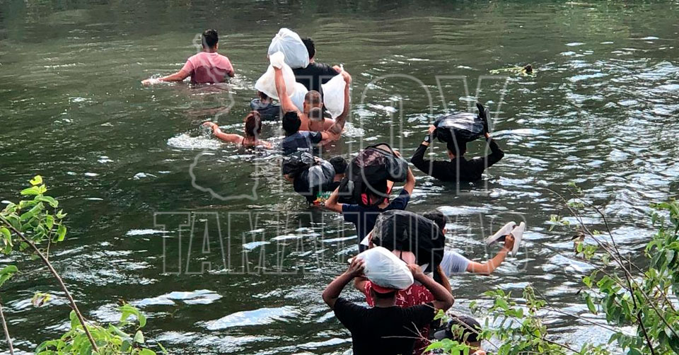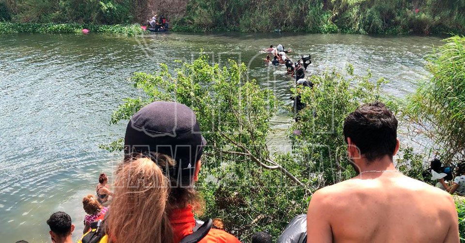Matamoros, Tamaulipas. - Los cruces masivos de migrantes a través del río Bravo que divide a las ciudades de Brownsville, Texas y Matamoros continúa, incluso ahora hasta caminando están llegando al otro lado de la frontera.