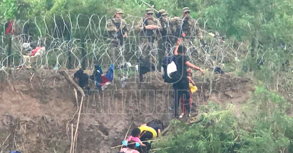 Del otro lado de la frontera la Guardia Nacional de Estados Unidos ya los esperaban arriba del bordo, sobre el cableado de púas, con lo cual están conteniendo al momento de llegar.