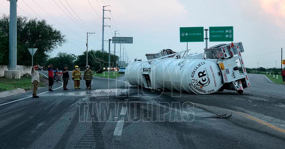 Cierre parcial de la carretera Victoria-Soto La Marina por volcadura de pipa de diésel