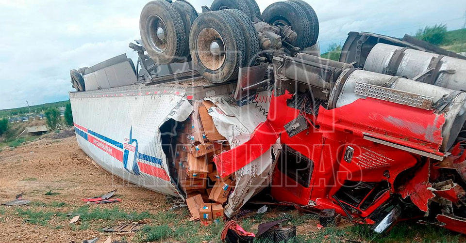 Sobrevive trailero a volcadura en autopista rumbo a Nuevo Laredo
