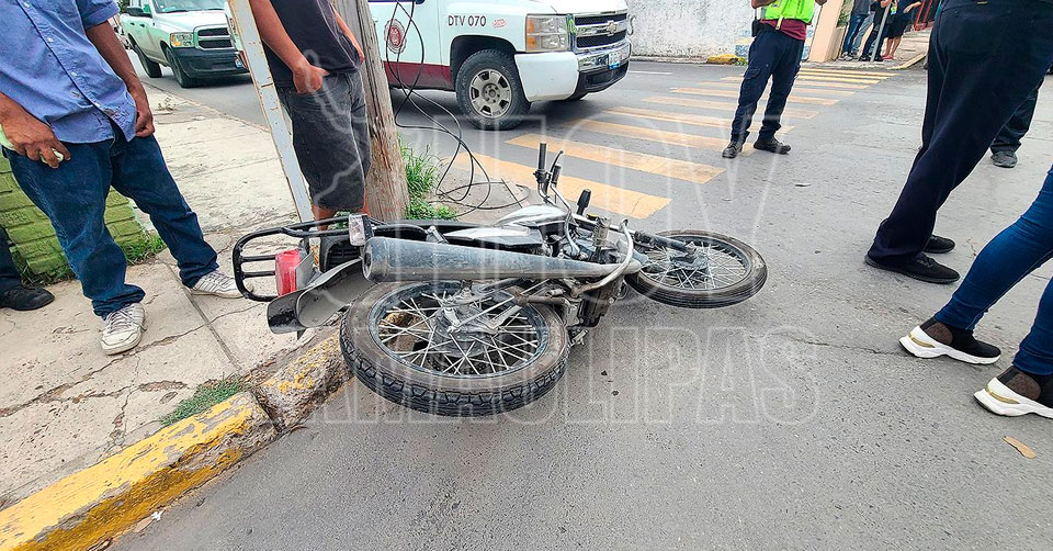 Nuevo Laredo, Tamaulipas.— Un motociclista terminó herido al chocar contra un automóvil, cuya conductora invadió su camino en calles de la colonia Guerrero en Nuevo Laredo.