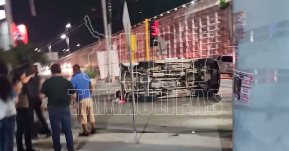 Salen eyectados de caja de camioneta tras choque y volcadura en Reynosa