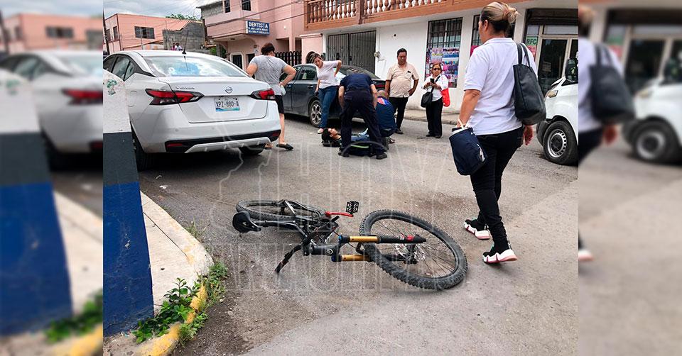 Ciudad Victoria, Tamaulipas. – Un joven resultó lesionado luego de ser derribado de su bicicleta al pasarse una señal de alto en el 10 Bravo, zona centro de esta ciudad capital.