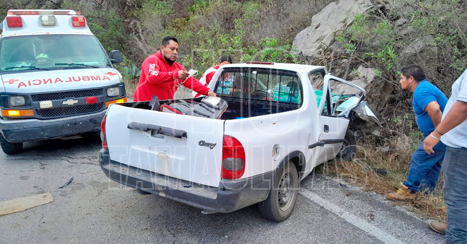 Tula, Tamaulipas. - Un hombre de la tercera edad murió y dos más resultaron lesionados al estrellarse la camioneta que tripulaban contra el talud de la sierra en la carretera Tula-Ocampo.