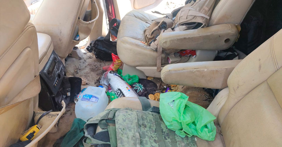 Los infractores huyeron entre la maleza dejando abandonado un vehículo Cadillac Escalade, con blindaje en la parte posterior.