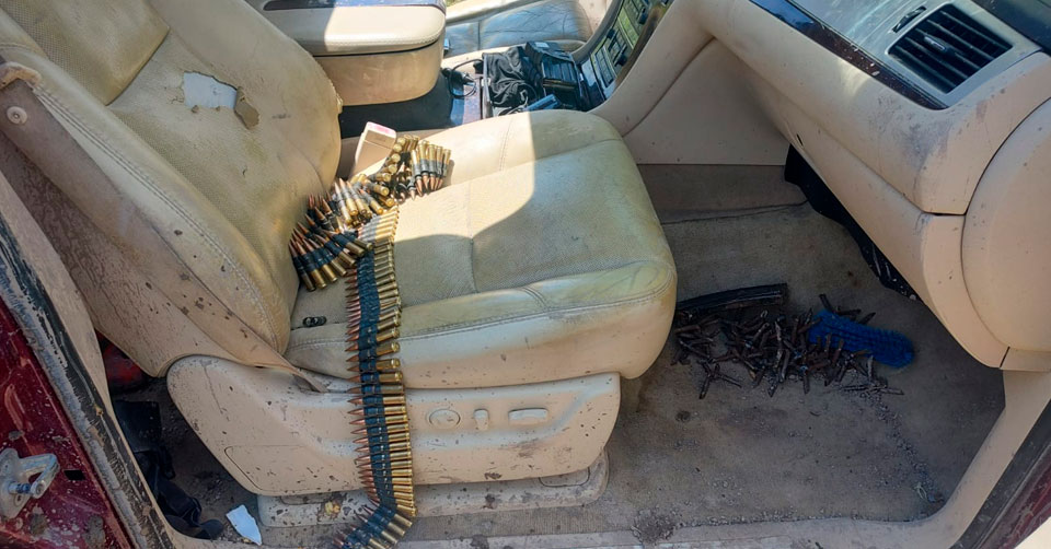 En su interior se hallaron 19 cargadores de distintos calibres, una cinta con cartuchos, dos chalecos tácticos con dos placas balísticas, dos granadas de fragmentación y 300 cartuchos de diferentes calibres.