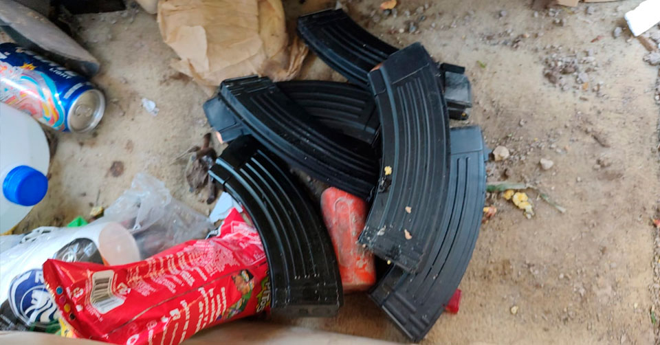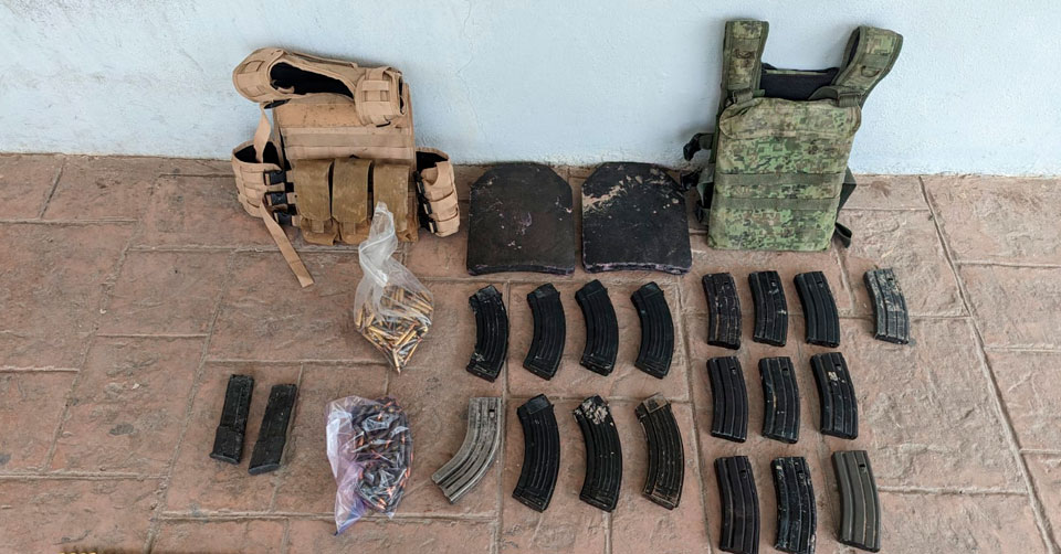 Aseguran estaca con "piñas", cartuchos y chalecos en Reynosa; malandros huyeron