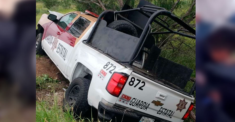 Al menos tres guardias estatales lesionados al volcar patrulla en Miguel Alemán
