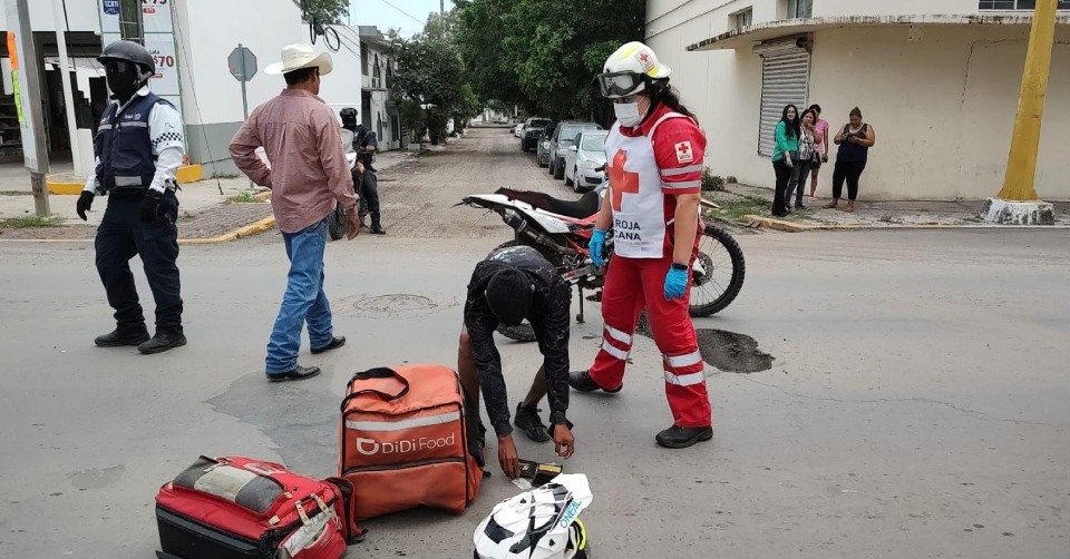 Ciudad Victoria, Tamaulipas. - Con diferentes golpes en el cuerpo resultó un repartidor de Didi luego de chocar contra una camioneta, cuyo conductor ignoró la luz roja de un semáforo.