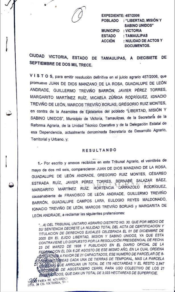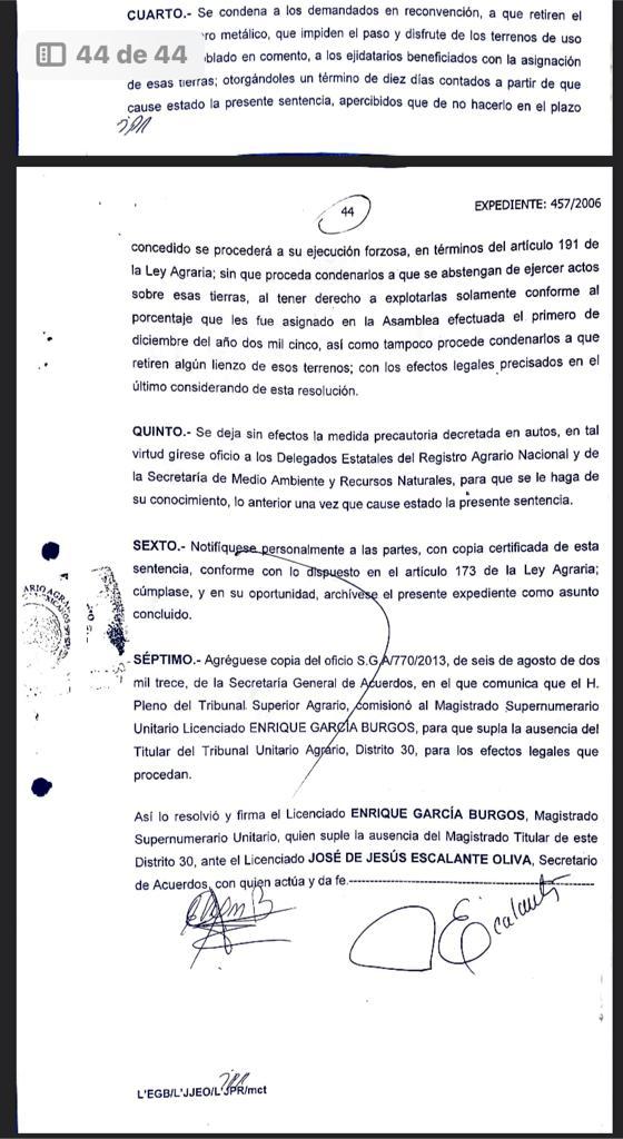 De acuerdo a lo señalado por el comisariado ejidal, Eligio Bautista, la disputa de estas tierras comenzó en el año 2006, sin embargo, ya existió una resolución de parte de la Fiscalía Agraria en donde les dieron el fallo a su favor.