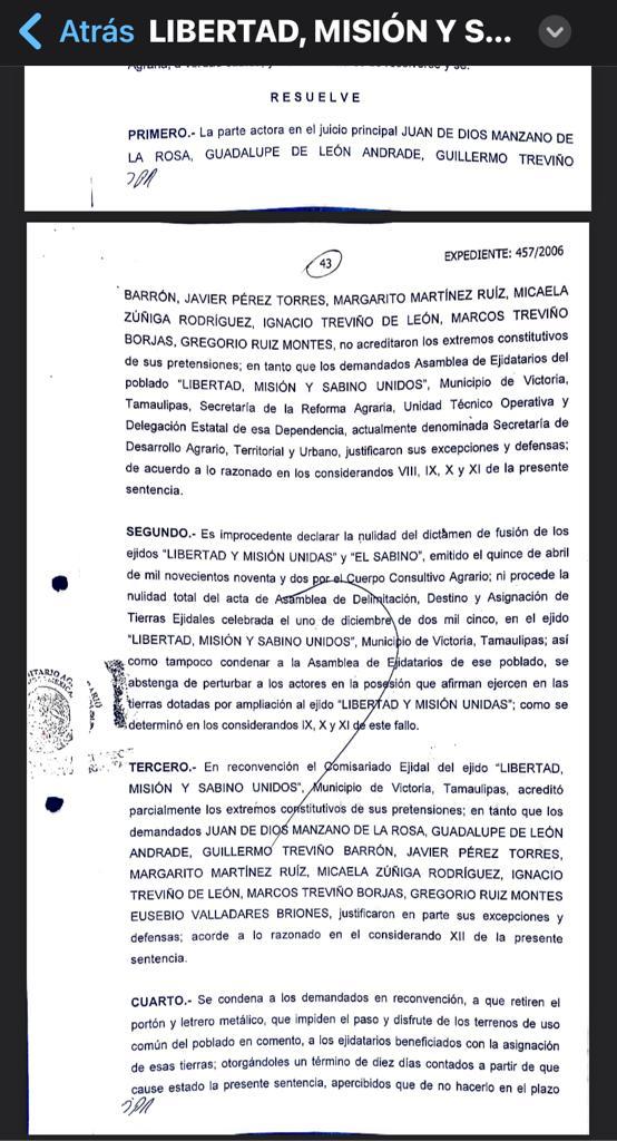 Además, manifestó que la resolución la tiene ahora la FGJ de Tamaulipas, la cual desde 2019 que no resuelve.